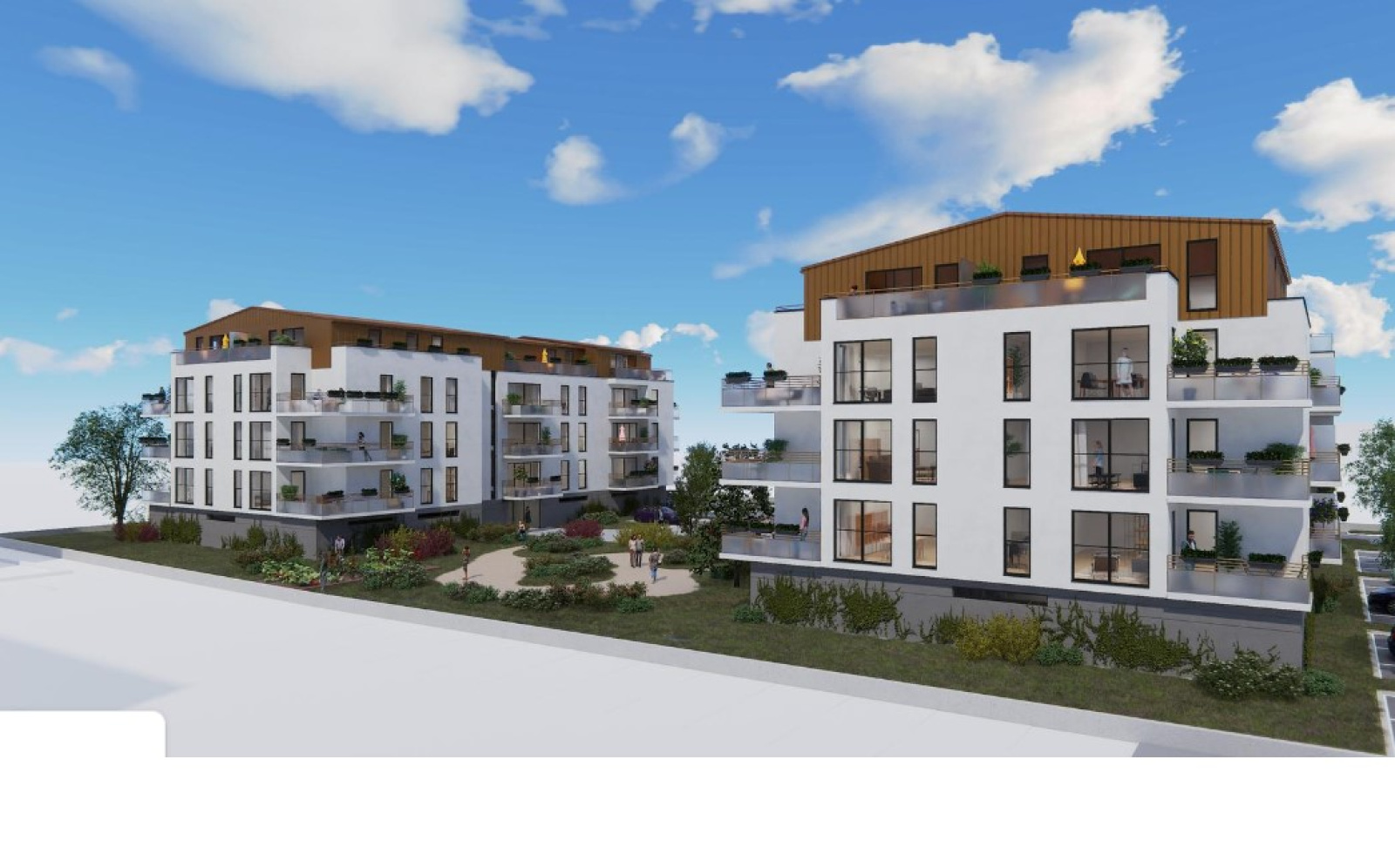 Ils abritent des appartements neufs du 2 au 5 pièces profitant d’un ensoleillement maximal grâce à de généreuses baies. Tous s’ouvrent sur un extérieur prenant la forme d’un balcon, d’une terrasse classique ou en angle. Pour l’agrément des habitants, le cœur d’îlot fait la part belle à un jardin paysager commun. Créateur de liens entre voisins, il conjugue potager partagé, aire de jeux, massifs fleuris et bancs. La plupart des logements jouissent de vues aux accents d’évasion sur cet écrin vert, sur le mont Saint-Quentin ou encore sur la vallée de la Moselle.